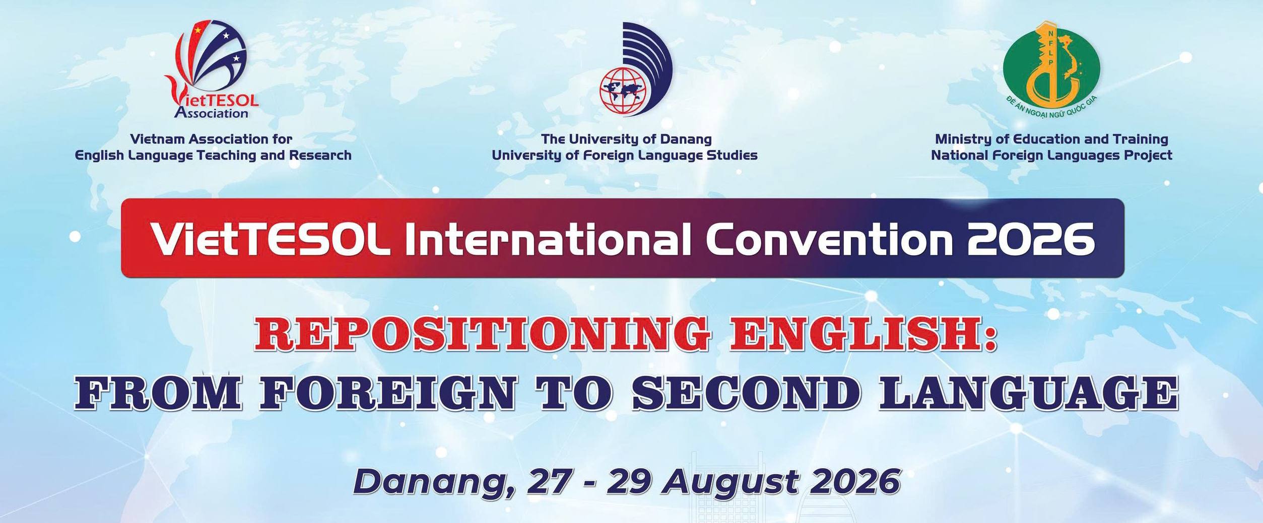 VietTESOL International Convention is the annual conference of the Vietnam Association of English Language Teaching and Research (VietTESOL). Hosted by institutions across Vietnam, the convention brings together educators, researchers, and practitioners to share insights and advance English language teaching and learning. In 2026, the convention is organised by VietTESOL in collaboration with the National Foreign Languages Project (NFLP) and University of Foreign Language Studies, The University of Danang (UFLS). It will take place at 131 Luong Nhu Hoc, Cam Le Ward, Danang City from 27–29 August 2026. This section introduces the Steering Committee, Academic Committees, and other working committees of the Convention. It also provides information about our sponsors and partners who help make the event possible.